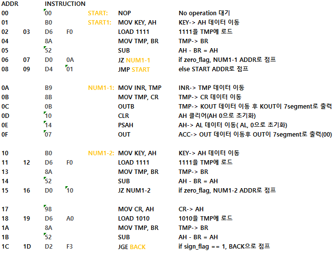 아니면 다음 줄로 넘어가서 JMP START를 수행한다. 그러면 맨 처음 00주소로 돌아가서 다시 실행된다.